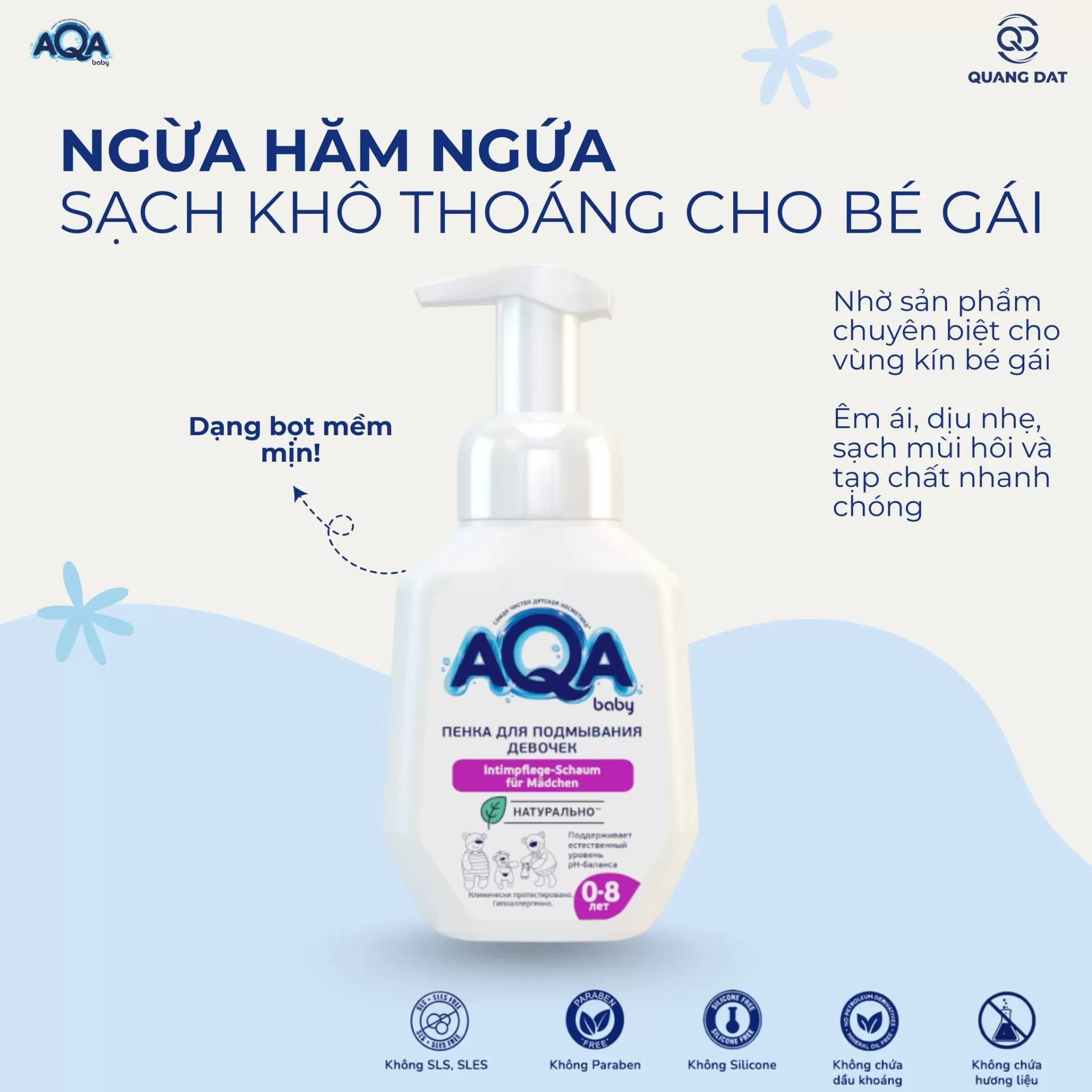 Không chỉ có bọt vệ sinh vùng kín bé gái, AQA Baby còn là thương hiệu nổi tiếng với các sản phẩm chăm sóc da trẻ em an toàn, dịu nhẹ chuẩn châu Âu, được kiểm định nghiêm ngặt. Đây là dòng sản phẩm nhập khẩu trực tiếp, được các mẹ Việt tin dùng bởi hiệu quả rõ rệt và độ lành tính tuyệt đối.