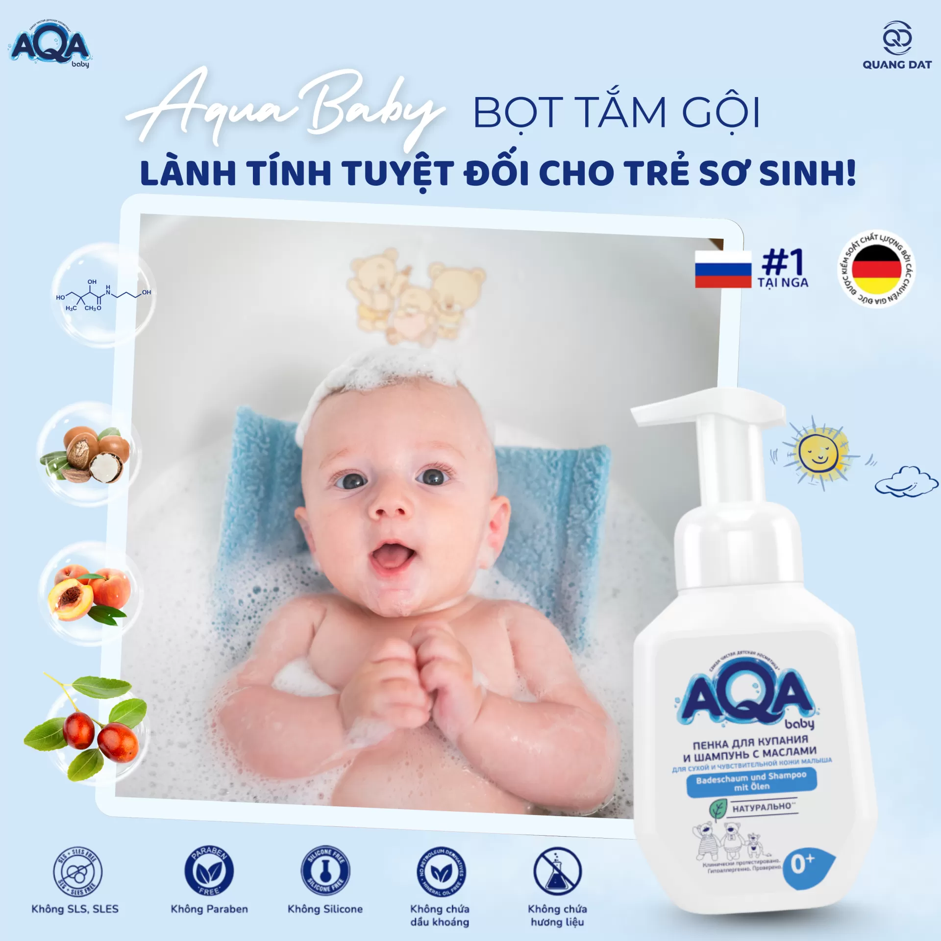 Hiểu được làn da non nớt của bé, Aqa Baby – thương hiệu chăm sóc bé nổi tiếng từ Nga – đã nghiên cứu và phát triển bọt tắm gội toàn thân Aqa Baby, đặc biệt an toàn cho trẻ sơ sinh từ 0 tháng tuổi.